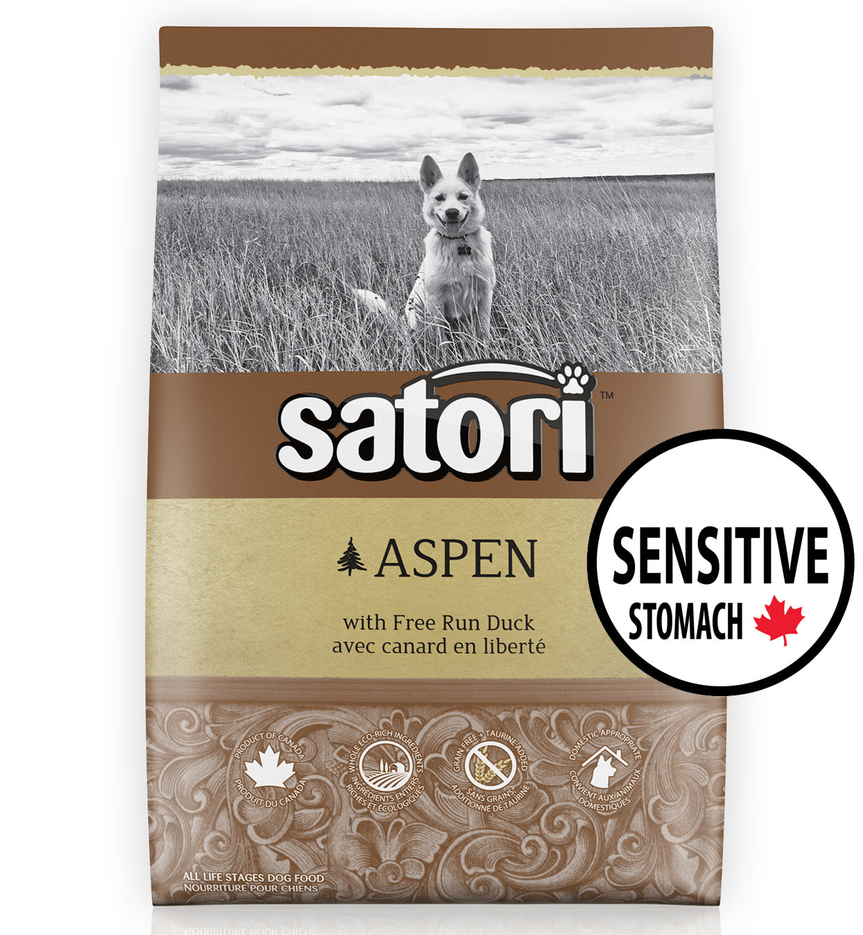 Satori Aspen Duck Recipe is the first Domestic Appropriate pet food specially designed to bridge the gap between your canine’s anatomy and modern lifestyle. Our Duck recipe has a logical approach as it considers canines, like the wolf, have digestive systems setup to efficiently process meat therefore it is grain free and made with Fresh Duck. We then took it a step further by understanding our pets caloric needs are not the same as their wild ancestors since they do not travel 20-25km per day hunting and searching for food. These differences are the reason we adjusted the nutrition to fit their domestic lifestyle which consists of living in houses and backyards where their meals are served to them.