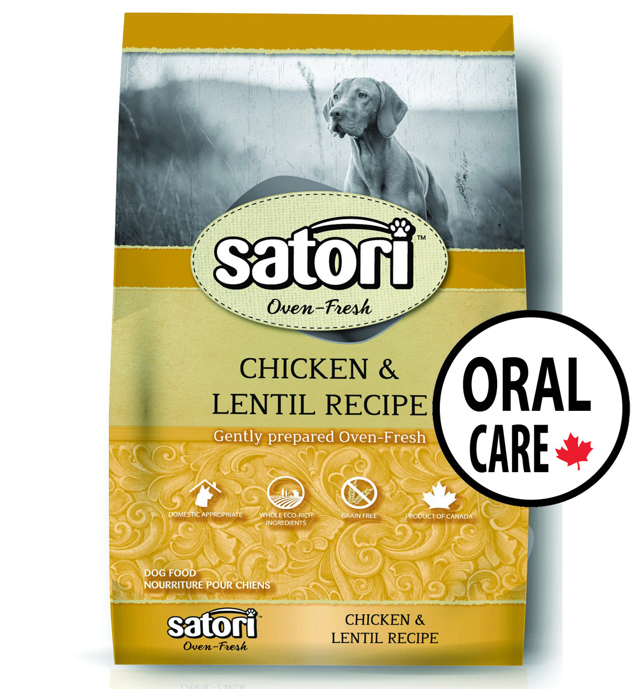 Satori is the first Domestic Appropriate pet food specially designed to bridge the gap between your canine’s anatomy and modern lifestyle. Our Oven Made Chicken recipe has a logical approach as it considers canines, like the wolf, have digestive systems setup to efficiently process meat therefore it is grain free and made with Fresh Chicken. We then took it a step further by understanding our pets caloric needs are not the same as their wild ancestors since they do not travel 20-25km per day hunting and searching for food. These differences are the reason we adjusted the nutrition to fit their domestic lifestyle which consists of living in houses and backyards where their meals are served to them.