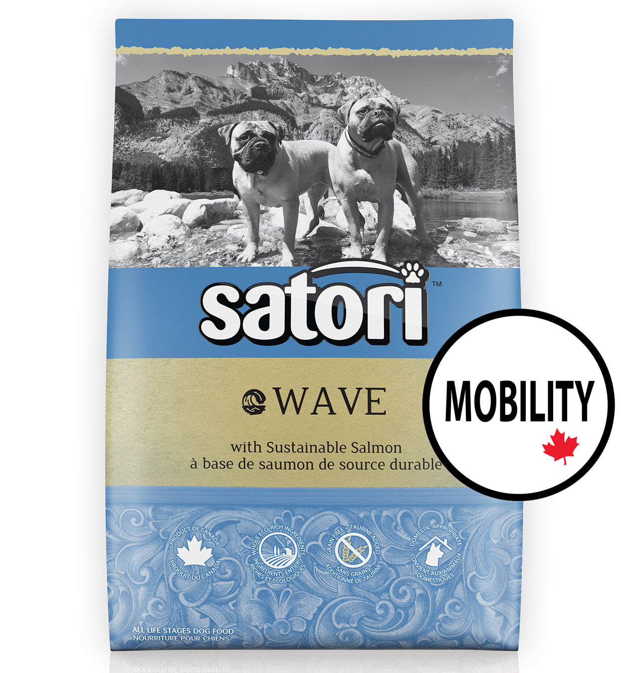 Satori Wave Salmon Recipe is the first Domestic Appropriate pet food specially designed to bridge the gap between your canine’s anatomy and modern lifestyle. Our salmon recipe has a logical approach as it considers canines, like the wolf, have digestive systems setup to efficiently process meat therefore it is grain free and made with fresh salmon. We then took it a step further by understanding our pets caloric needs are not the same as their wild ancestors since they do not travel 20-25km per day hunting and searching for food. These differences are the reason we adjusted the nutrition to fit their domestic lifestyle which consists of living in houses and backyards where their meals are served to them.