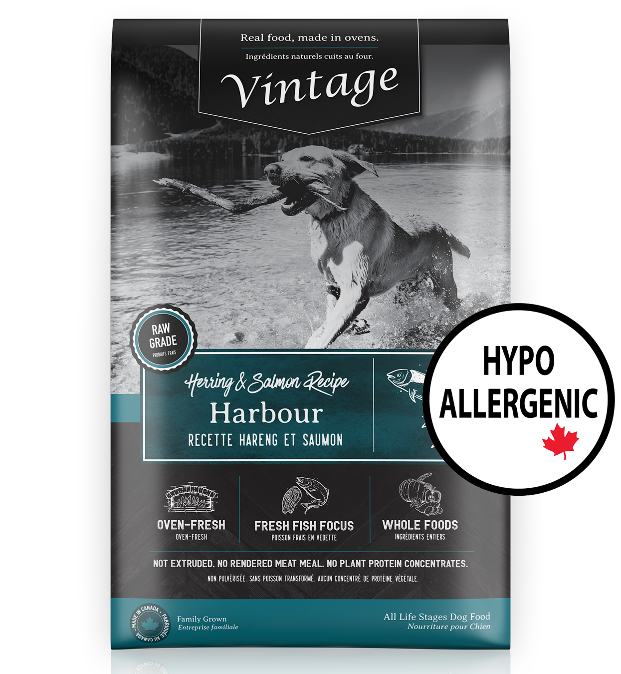Vintage is changing the way you nurture your pet by blending fresh and whole foods to maximize the bioavailability of nutrients. Mother nature intended ingredients in their complex and whole nutritious form to satisfy your pet’s energy requirements. Our homestyle Oven-Fresh canine recipes are made with carefully selected premium fresh fish complemented by market fresh produce. We have trusted Canadian partners that supply us with 1st cut proteins which are antibiotic and hormone free. Vintage Oven-Fresh recipes are gently and slowly prepared in small batches in the oven to ensure exceptional nutrient retention for your companion. Our goal is to provide nutritious foods to help nourish your pet’s soul with every bowl - available across Canada and Internationally.